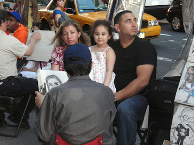 Family having their portrait drawn